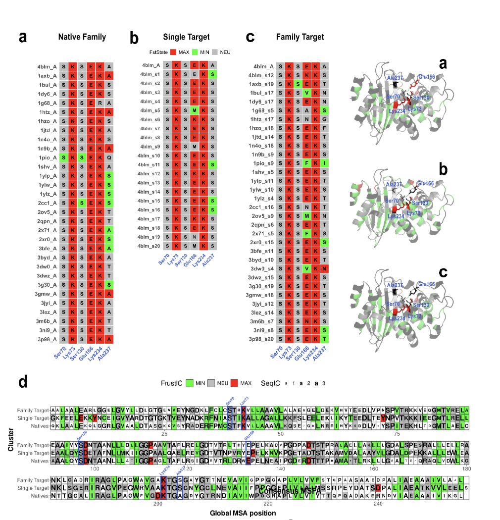 Using reverse-folding algorithms (ProteinMPNN, Caliby) + structure prediction + local frustration analysis,