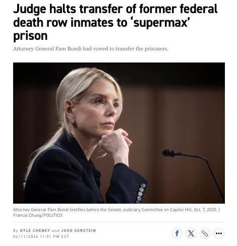 2) BLOWING OFF DEADLINES: When detainees sue for release, the administration is increasingly blowing off court-ordered deadlines to response. It's become almost routine and has led judges to order release in some cases. politico.com/news/2026/02/1…