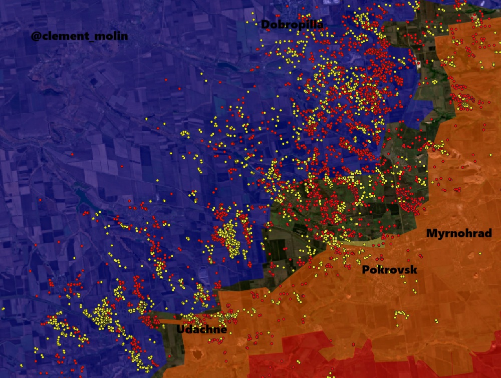 The Pokrovsk direction remains very active. Russia is massively striking being the agglomeration, aiming at capturing a buffer zone west of it and eventually reach Dobropilla.