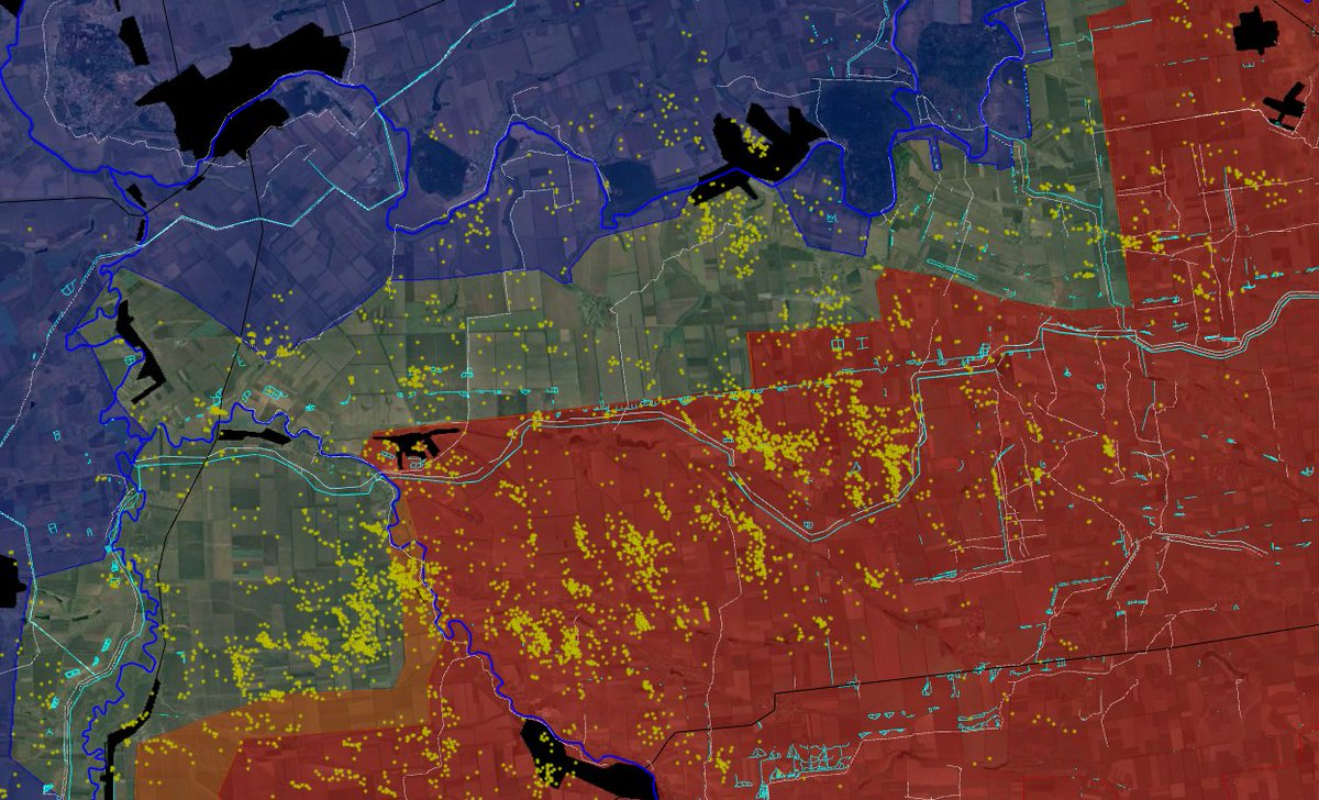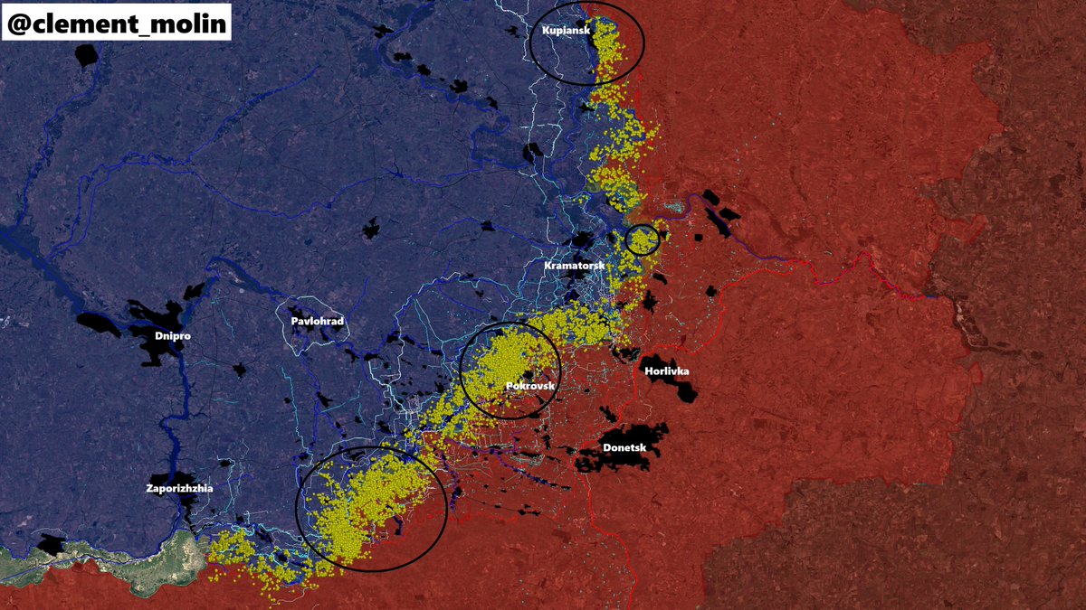 Indeed, we can see every artillery and airstrike impacts, something we cannot see otherwise. I mapped 12 000 of them between Kostiantynivka and the Dnipro river, with two holes, the area around Novopavlivka/Ivanivka (some clouds) and the one north of Stepnohirsk and along the Dnipro, because there was no snow.