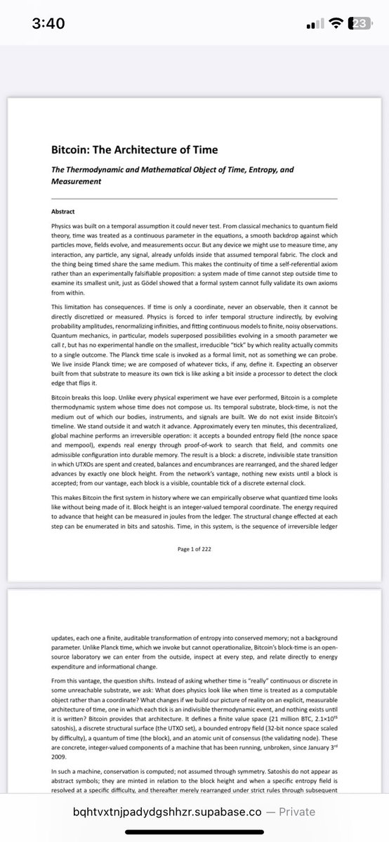 In short, my thesis and the Bitcoin slide both conclude that Time is not a given, it is relative to an achievement of work done by a system. Life "pays" for its consciousness by using energy to build a stable, discrete architecture of time that allows it to survive the relentless flow of entropy.