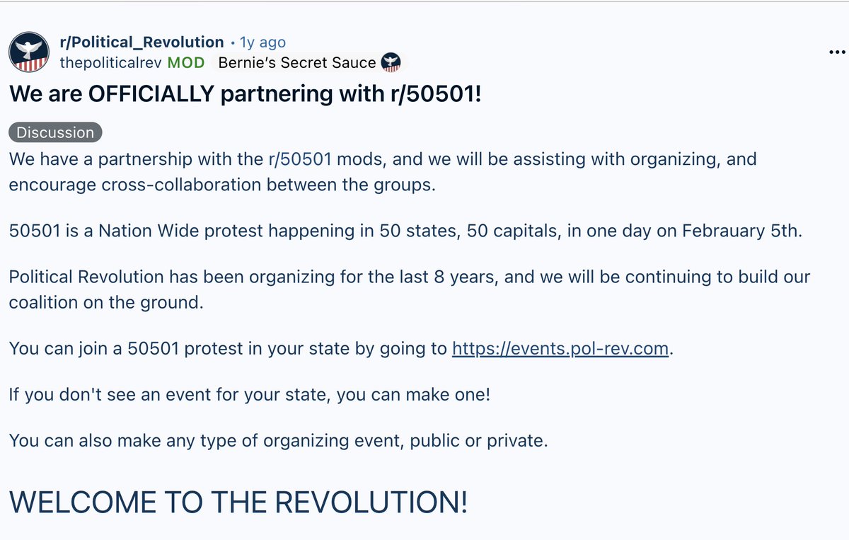 50501, one of the most prominent organizations behind the past year's protests, started as a Reddit post.