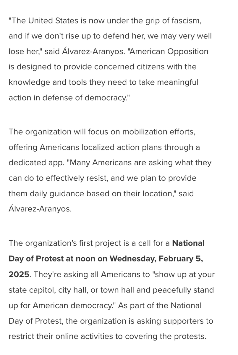 Separately (?), American Opposition via Carlo Alvarez-Aranyos claimed to be behind the February 5th protests. So that's two PACs behind it: American Revolution and American Opposition.