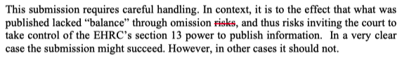 @EHRC Trivial point, but we feel we should be awarded a special prize for catching a typo that has escaped the judge himself plus all 10 counsel. (Or at least 4, if the judgment was proof-read only by one member of each team.)