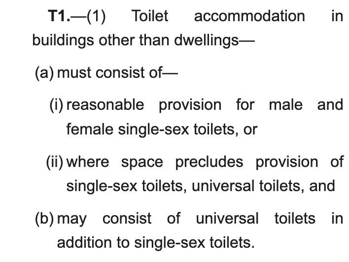 @EHRC So under the Building Regs, single-sex toilets are the default, and universal toilets are only permitted where space precludes single-sex provision.
