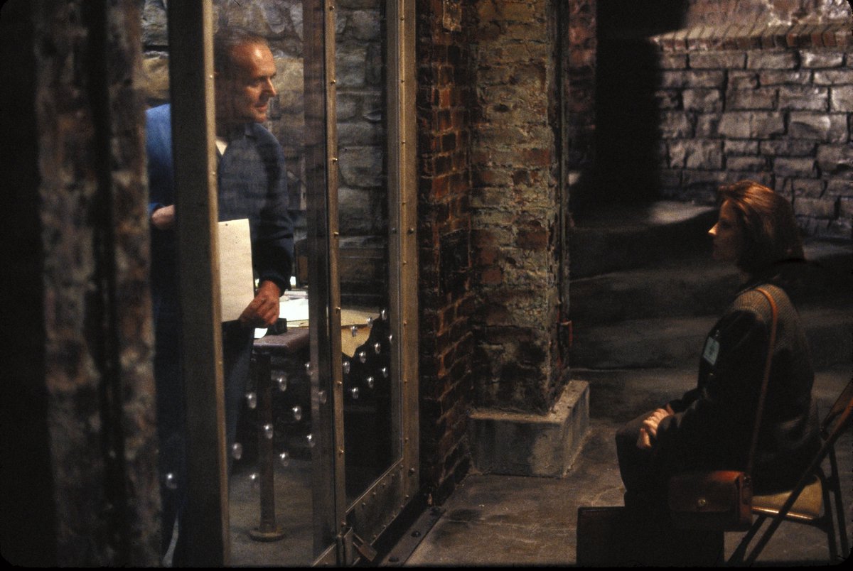 Filming the scene where Lecter and Clarice first meet, it was Hopkins idea for Lecter to look directly at the camera as it panned into view. And it was Kristi Zea’s idea for the cells to be glass rather than bars, so as not to obstruct the shots.