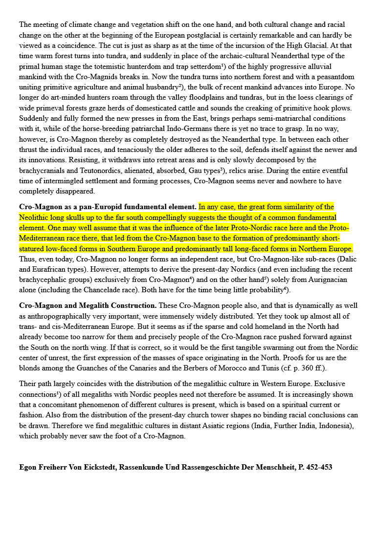 The Common Origin of the Nordic and Mediterranean Races in the European Paleolithic, The Alpine Round-Headed Separation From This Origin, According to the Major Racialists of the Reich: 🧵