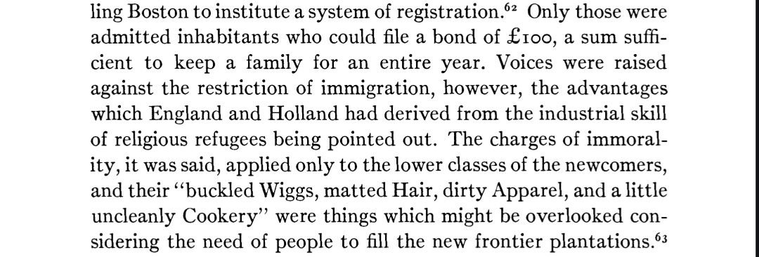 People talk about a lot about the Puritans wanting to "restrict immigration to the middle class". They mention attempts at Puritan migration restriction. This is a misunderstanding that doesn't grasp the real law or its implications.
