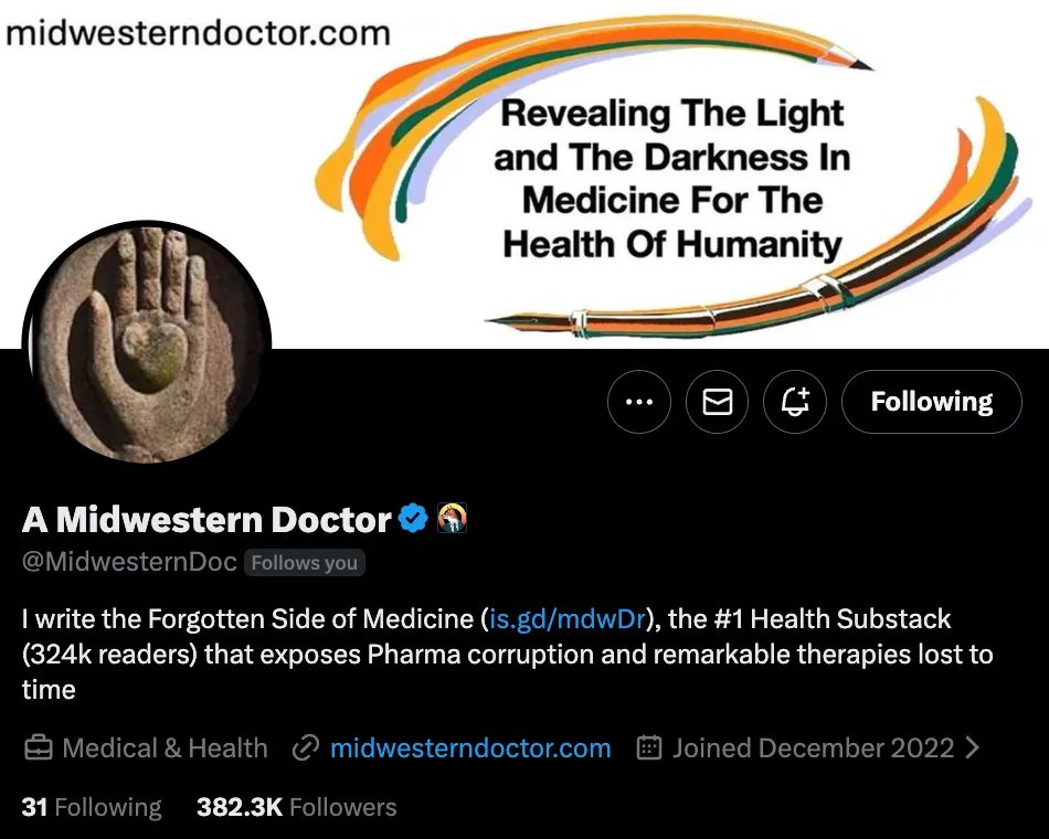 The information in this report comes from the work of medical researcher @MidwesternDoc.