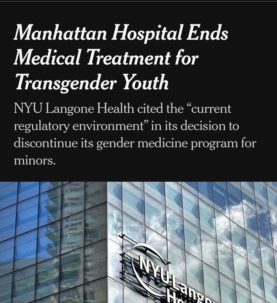 The New York Times reports that NYU Langone has shuttered its pediatric gender clinic in the face of the Trump administration’s threats of withdrawing Medicaid funding.
