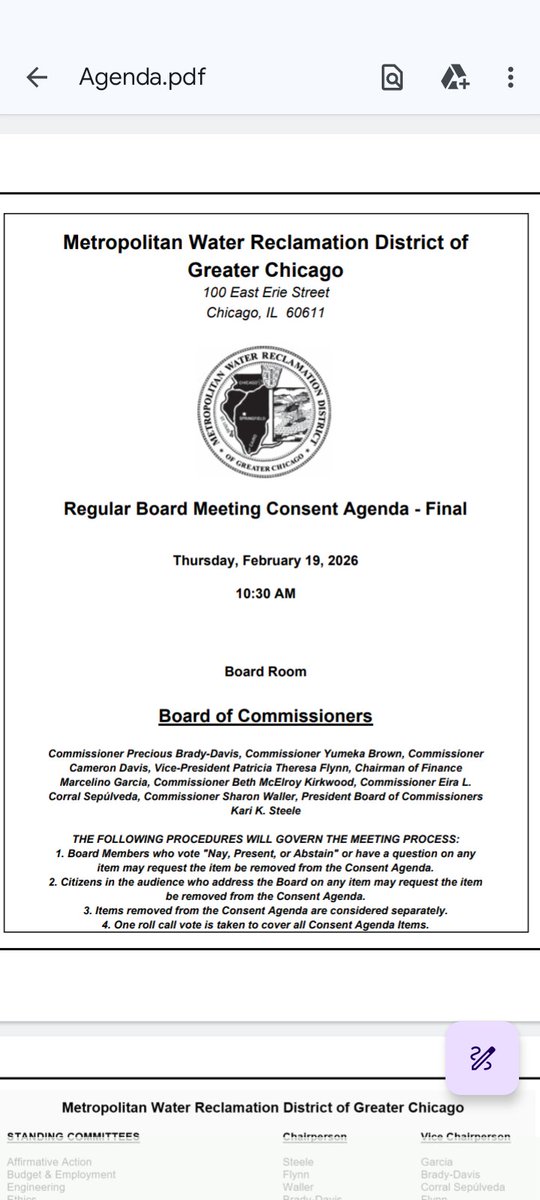 My name is Pachina Fletcher I will be live tweeting the Metropolitan Water Reclamation District of Greater Chicago Metropolitan Water Reclamation District Board meeting today for #CHI Documenters @CHIdocumenters