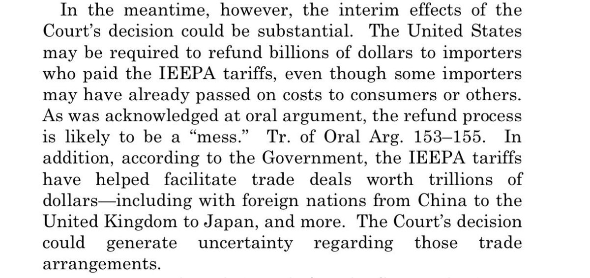 6/ Kavanaugh notes that the court’s decision and its impact on possible refunds to importers who paid IEEPA tariffs “is likely to be a ‘mess.’”