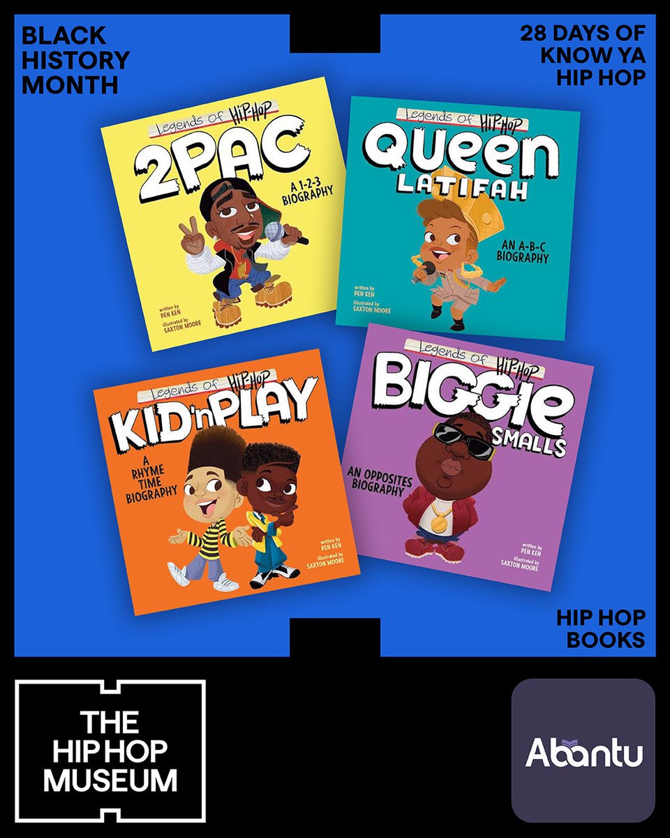 Legends of Hip-Hop by Pen Ken celebrates Hip Hop history through illustration, beginning with portraits of 2Pac and Queen Latifah and expanding to other cultural icons. Illustrated by Saxton Moore, the book features detailed, stylized artwork that reimagines legendary figures