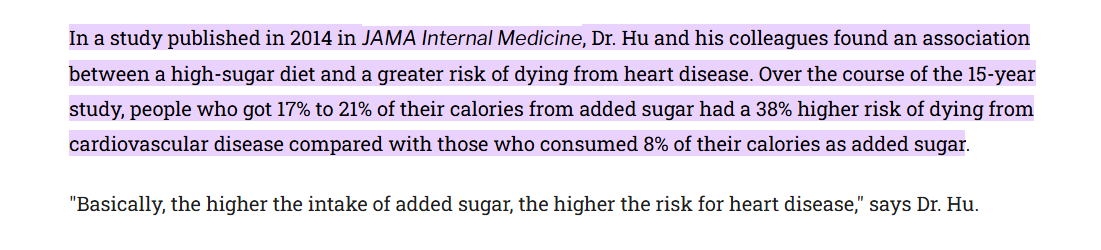 Harvard researchers found that people eating high-sugar diets had a 38% higher risk of dying from cardiovascular disease.
