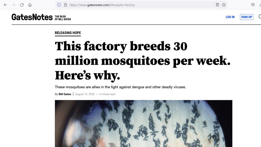 Em agosto d 2022, auge da censura e histeria, escrevi artigo como se fosse receita de bolo p/falar dos mosquitos modificados do Vil Gates. No artigo eu dou o link p/o blog do próprio Gates, já deletado, sobre sua fábrica d mosquito-frankenstein em Medellin poder360.com.br/opiniao/a-rece…