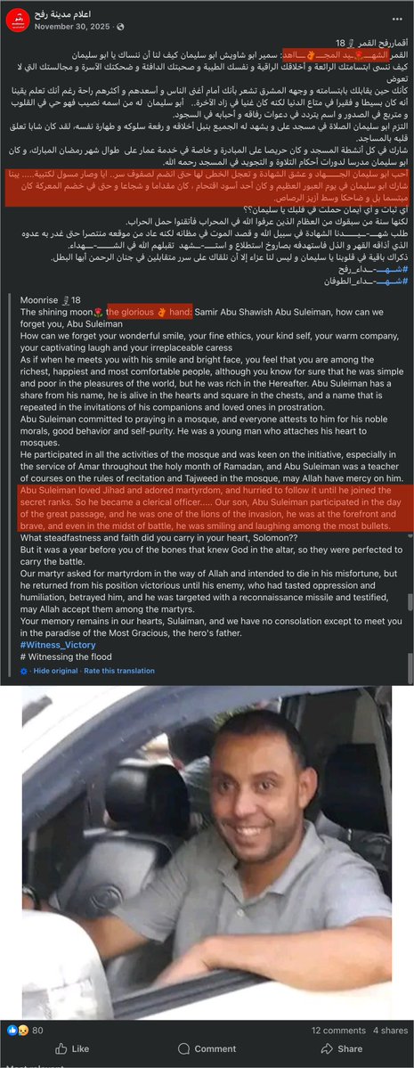 New posts on popular Gazan militant obituary channels show that the police director of the Kerem Shalom crossing, Bassem Salah Mohammed Ghubn, was a longstanding member of Hamas and a lifelong friend of Alaa al-Hadidi, supply chief in Hamas' manufacturing headquarters. 🧵