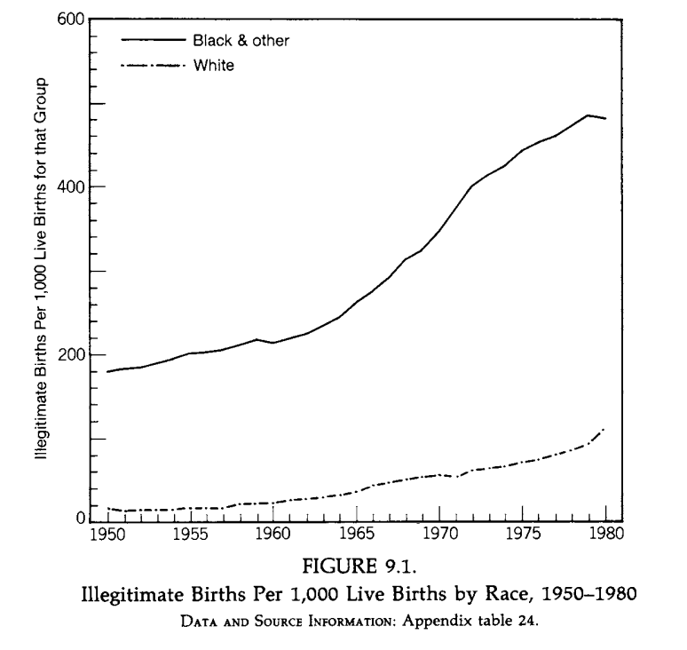"Virtually every new social program during the reform period included among its justifications that it would stabilize the family." Illegitimate births (left) and single-female households (right). Image