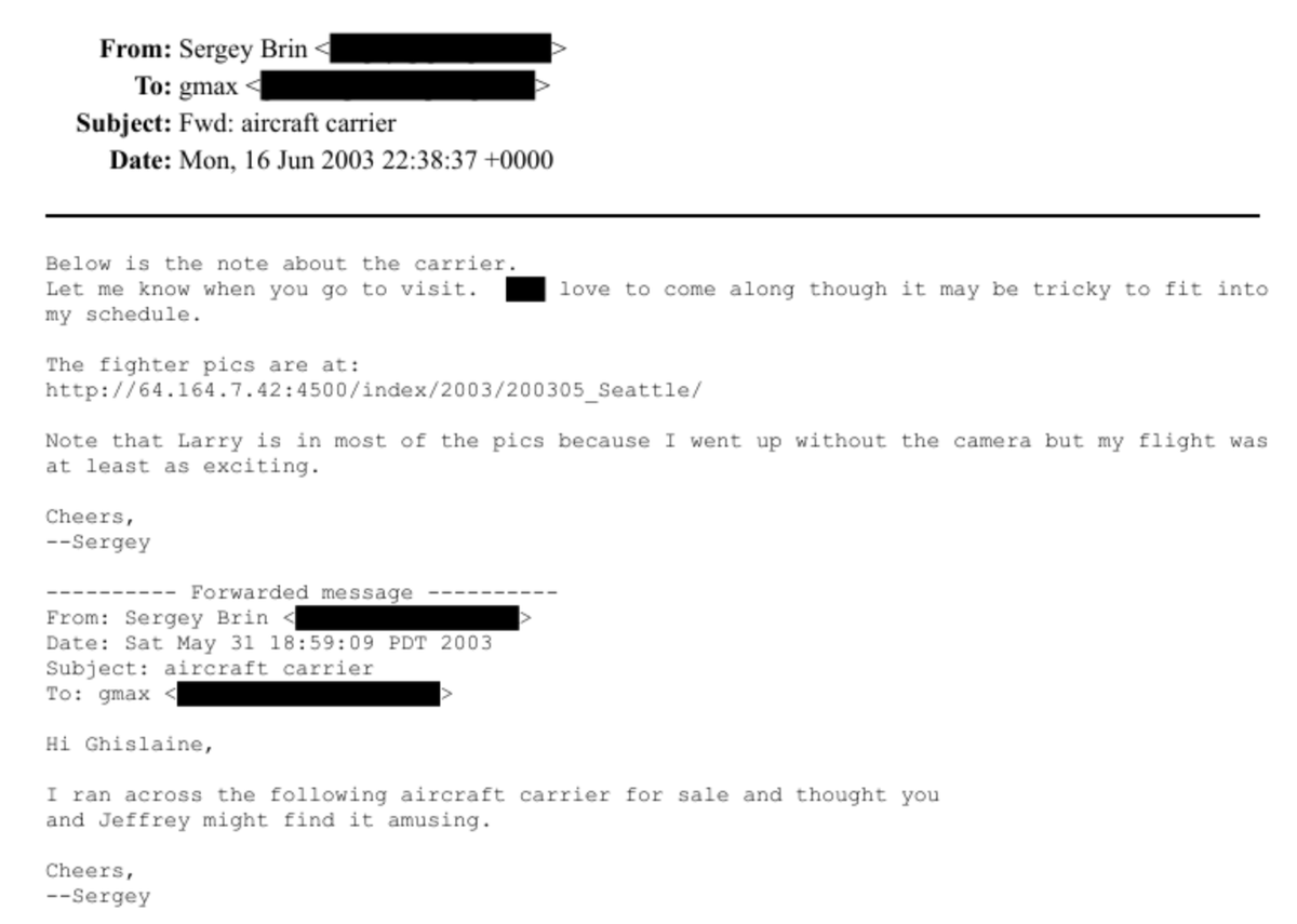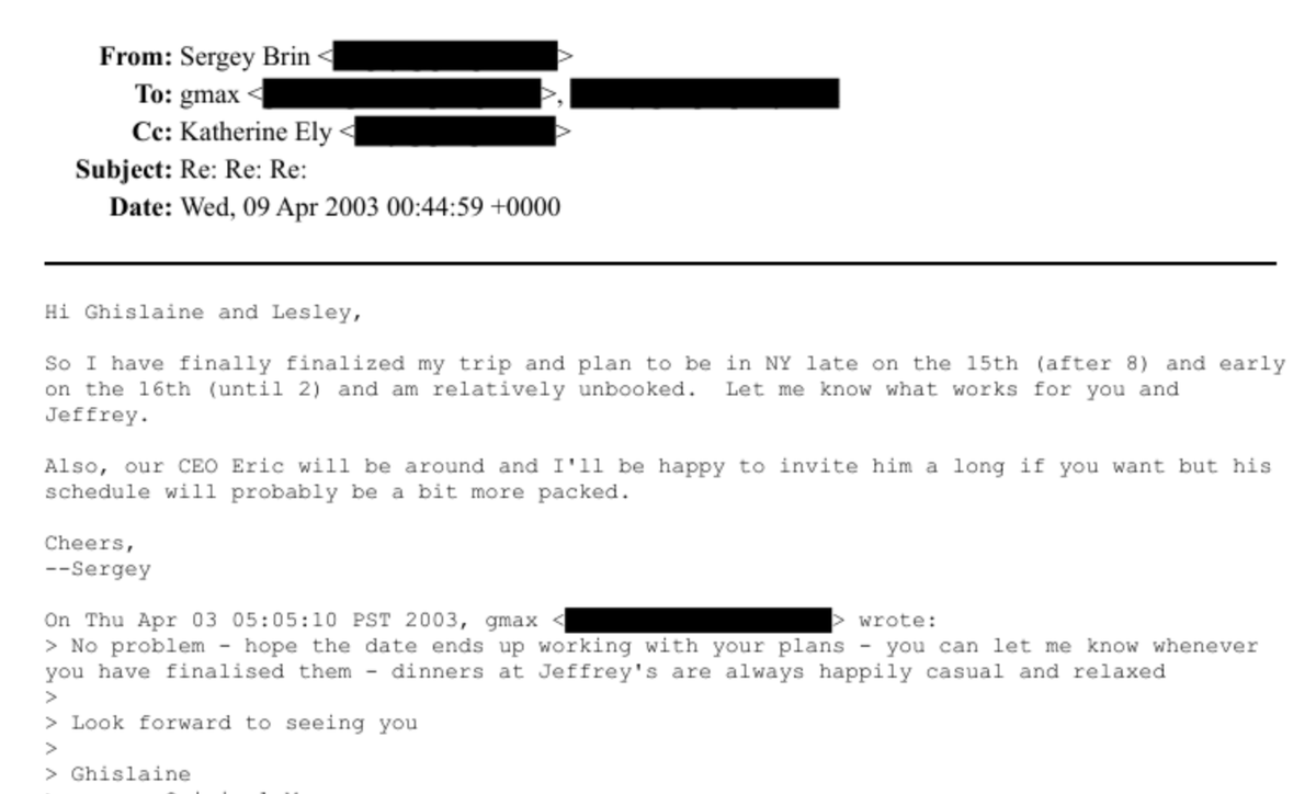 Google co-Founder, Sergey Brin, sent a whole lot of emails to Ghislaine Maxwell (aka "gmax").