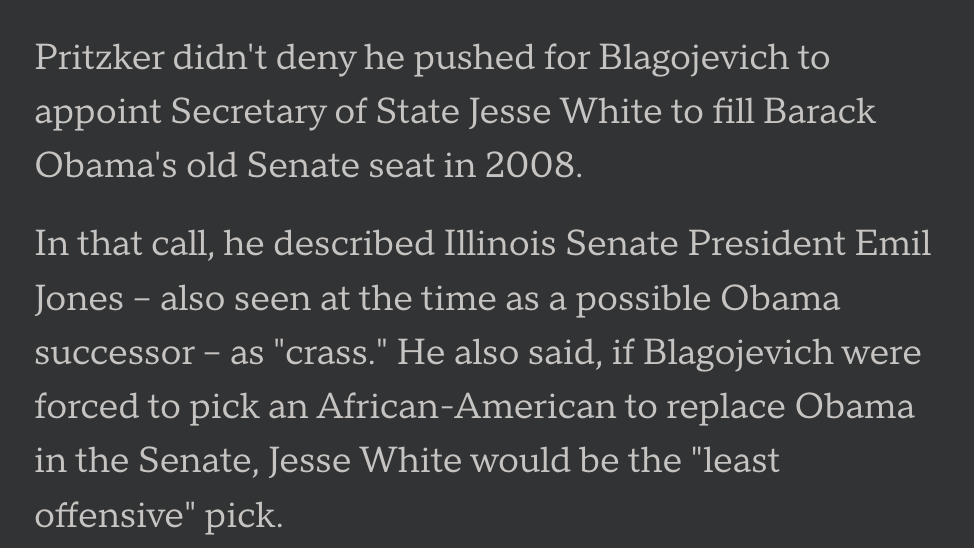 Also on tape: Pritzker discussing which Black politicians were "acceptable" for the Senate seat.
