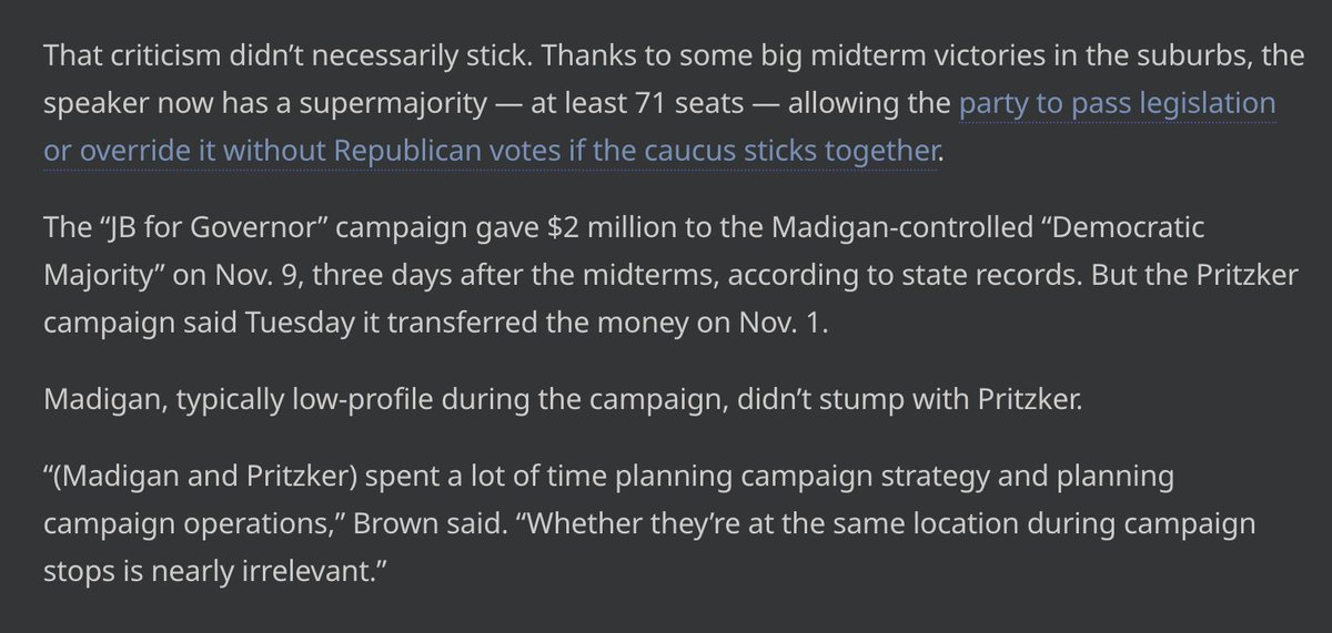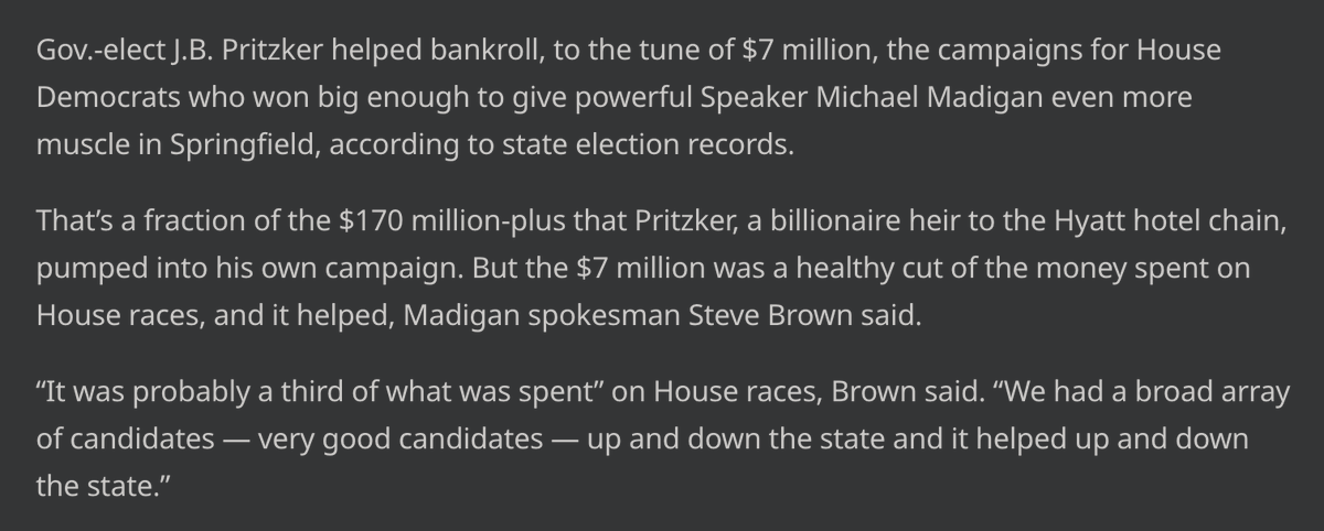 Just after winning the 2018 election, Governor-elect Pritzker donated $7 million to House Democrats under Speaker Michael Madigan's control.