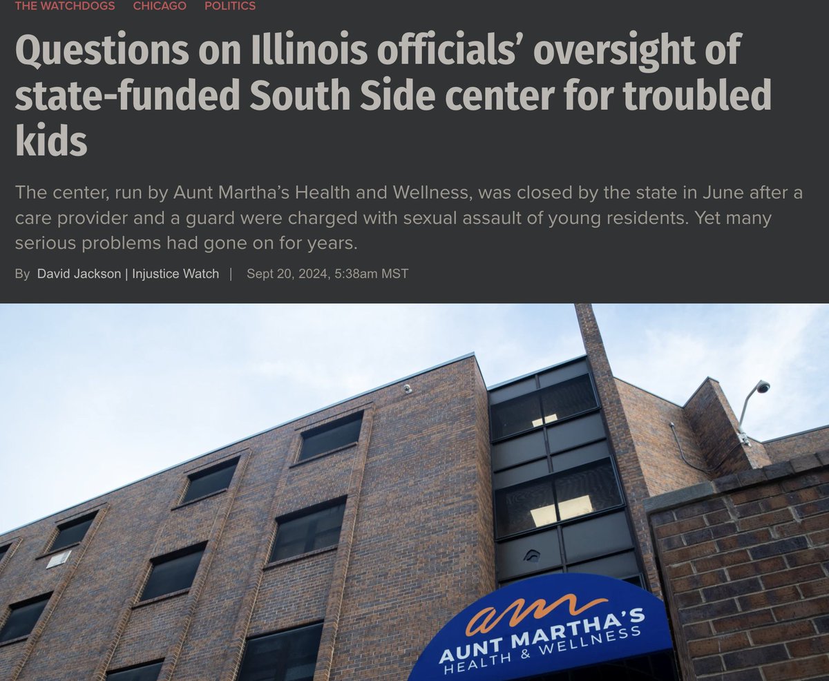 The Pritzker administration's DCFS (child welfare agency) funded a residential facility for foster youth on Chicago's South Side: Aunt Martha's Integrated Care Center.