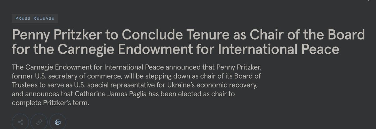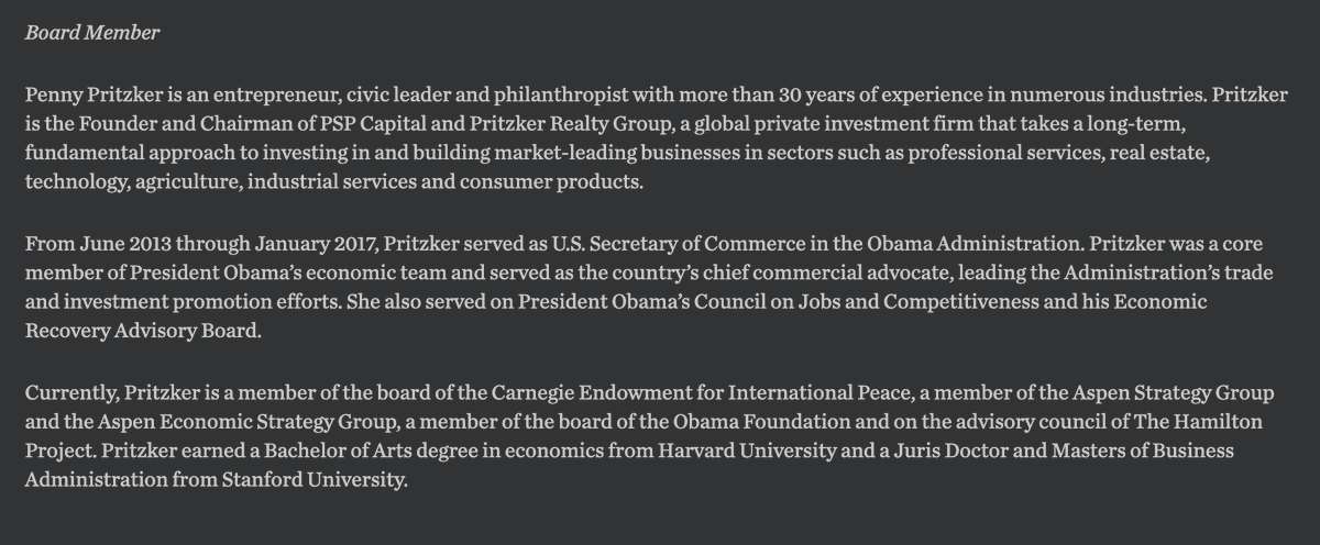 Sister Penny Pritzker: Obama Commerce Secretary → Chair of Carnegie Endowment for International Peace (close USAID/State Department → Biden's Ukraine Economic Czar.