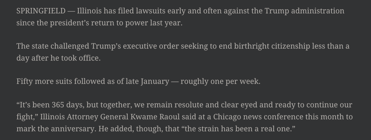 Illinois has filed or joined 51 lawsuits against the Trump administration since Jan. 20, 2025… roughly one per week.