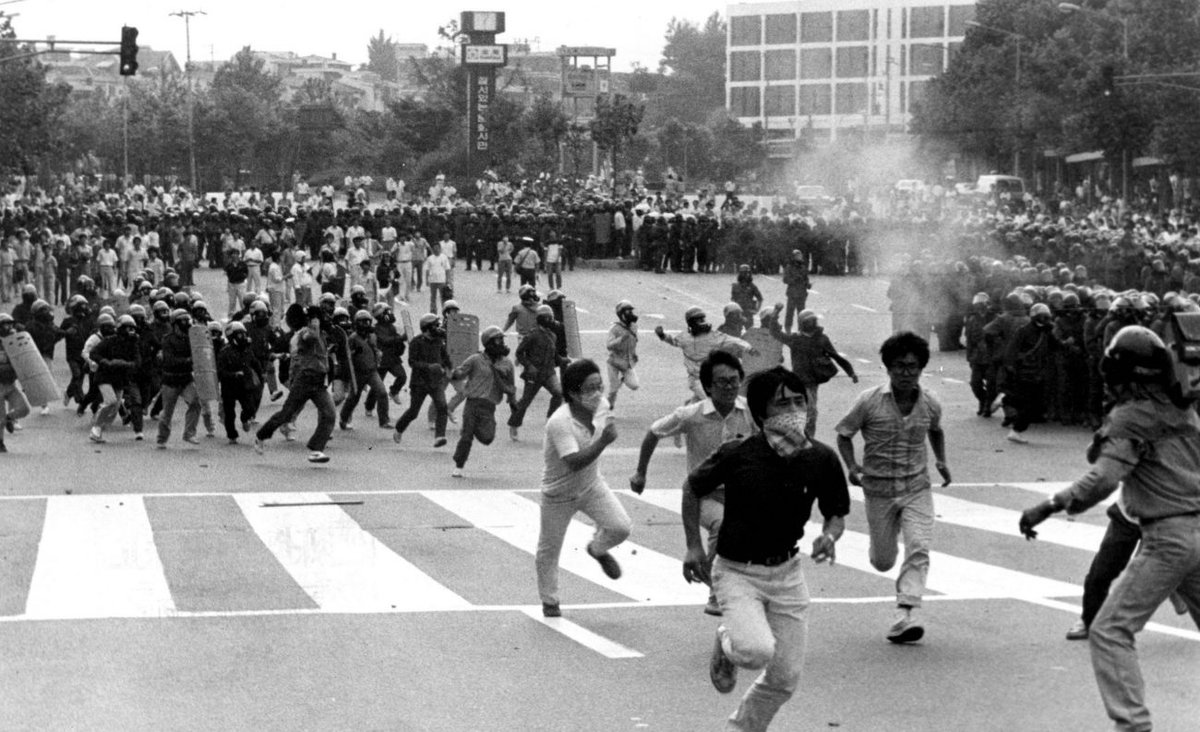 El asesinato de Park Chung-hee dio lugar a una segunda dictadura, esta vez más «laxa»: la de Chun Doo-hwan. Pero, para 1987, las crecientes tensiones llevaron a su colapso y a la restauración de la democracia burguesa. Volveremos a este evento en unos tuits.