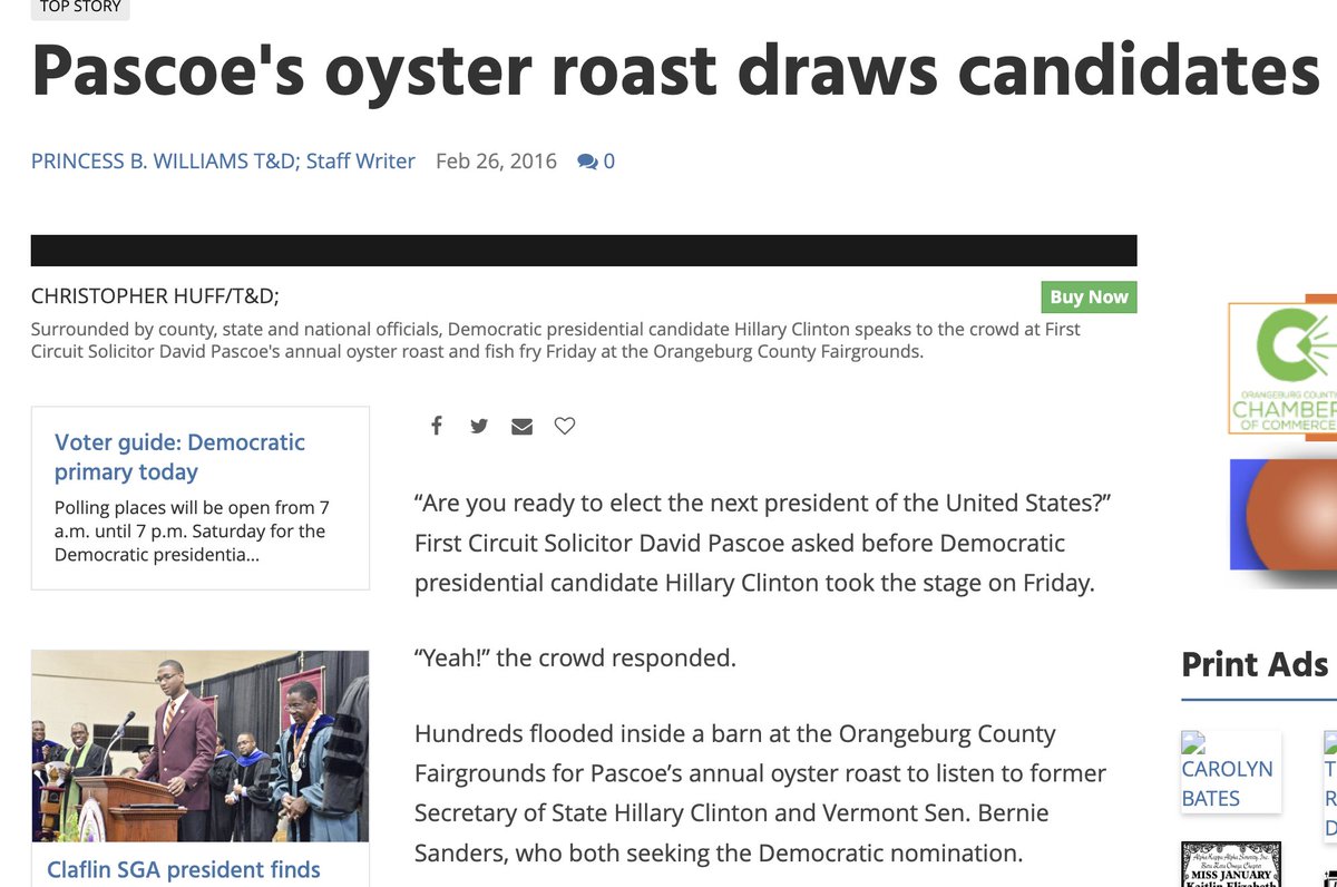 The Biden fundraiser wasn't a one-off. Pascoe's Oyster Roast at the Orangeburg County Fairgrounds hosted Hillary Clinton in 2016 too. He was a Democratic presidential kingmaker in SC for a decade. This was not a passive Democrat.