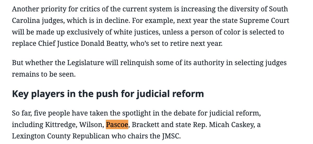 December 2023, 16 months before his "conversion"... Pascoe demanded SC's judiciary use a DEI-style racial quota system for judge recommendations. "It is insanity for anyone not to support reform for the good of our state."