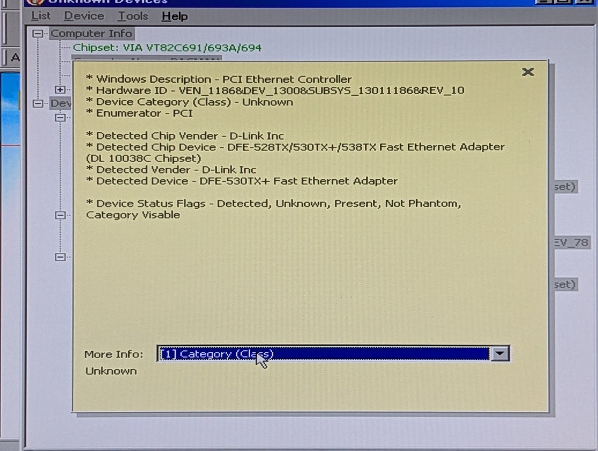 As you can see though from the previous screenshot, I found drivers! This card has an ADMtek AN983 chipset. Great! I found drivers on a Vogons post. And I used the other network card that was installed to transfer it to the computer š. Success