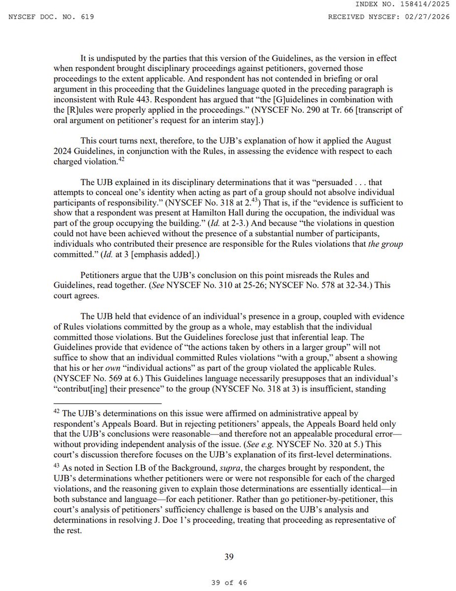 The court's own ruling confirms every failure was avoidable. One motion from @ManhattanDA would have kept the students' records unsealed. One phone call from @Columbia would have gotten him to file it. A police officer's testimony would have been admissible evidence. A law professor repeatedly warned the UJB that its key evidence was illegal.