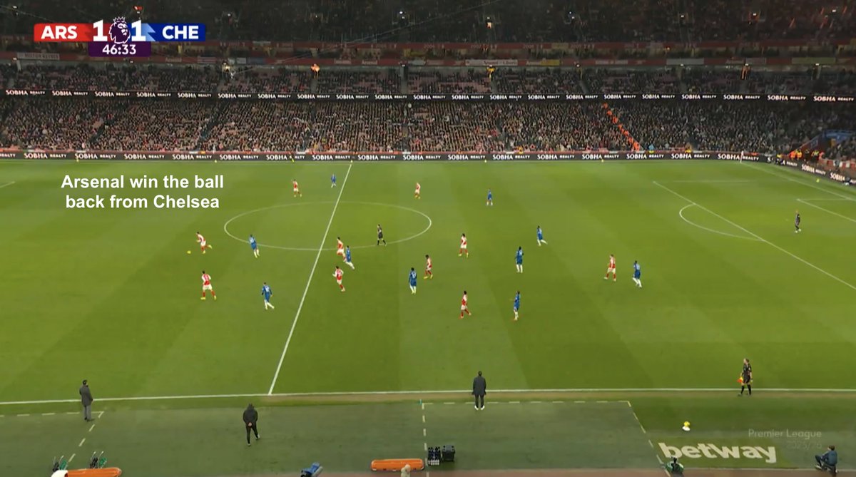 On my viewing, then, it was clear that Arsenal were giving up possessional control for out of possession control, and this continued into the second half, even when Chelsea were back level.