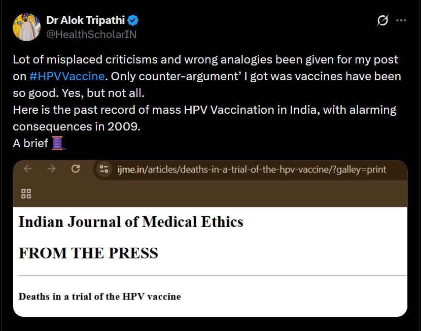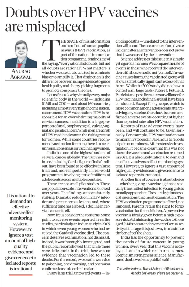 Luminaries from Trivedi BioScience #AshokaUniversity are batting for #HPVvaccine, citing a Swedish research paper.