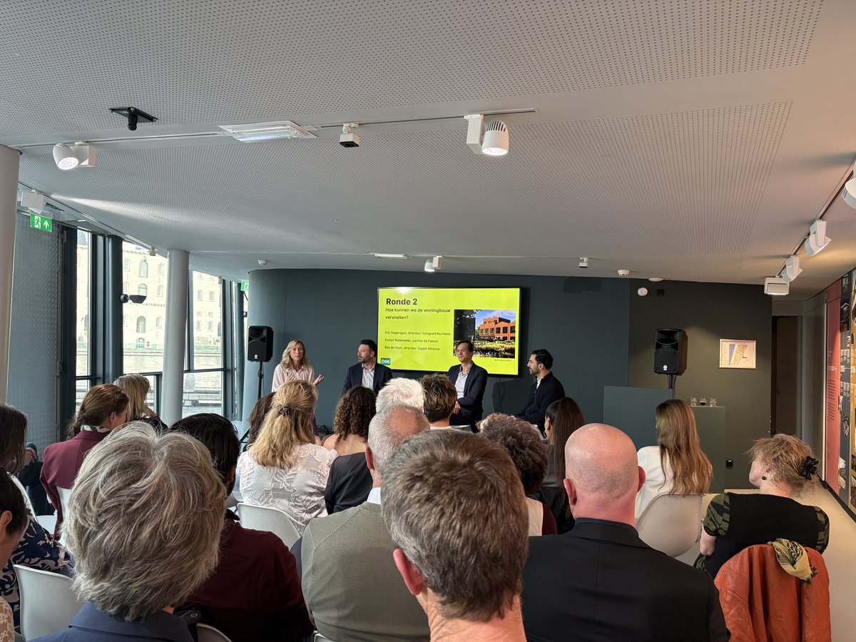 Oh dit was panel 1 al. Dat gaat snel. Er is nu een ronde 2. Eric Nagengast is directeur vastgoed bij Rochdale, Evelyn Rademaker is partner bij Fakton en Bas de Haan is directeur van Gapph Modular. We moeten voor al deze mensen afzonderlijk klappen.