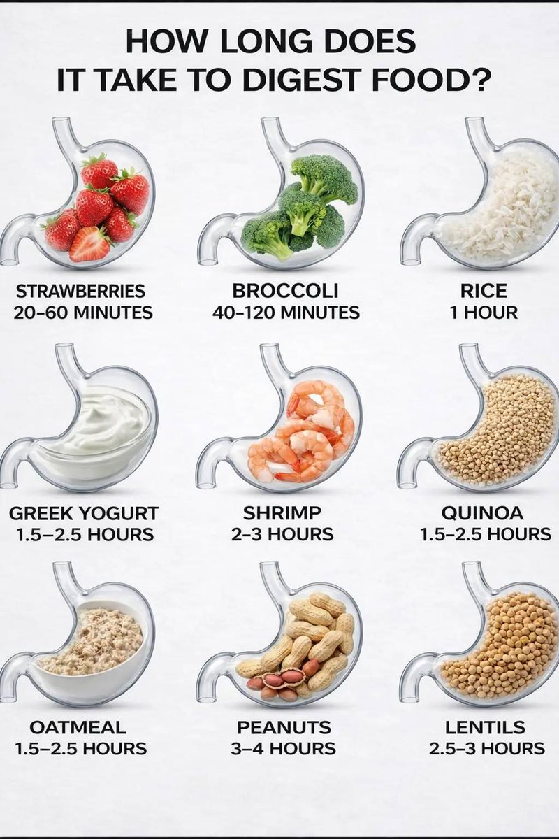 Protein & dense foods take longer to digest because they require more stomach acid and enzymes.