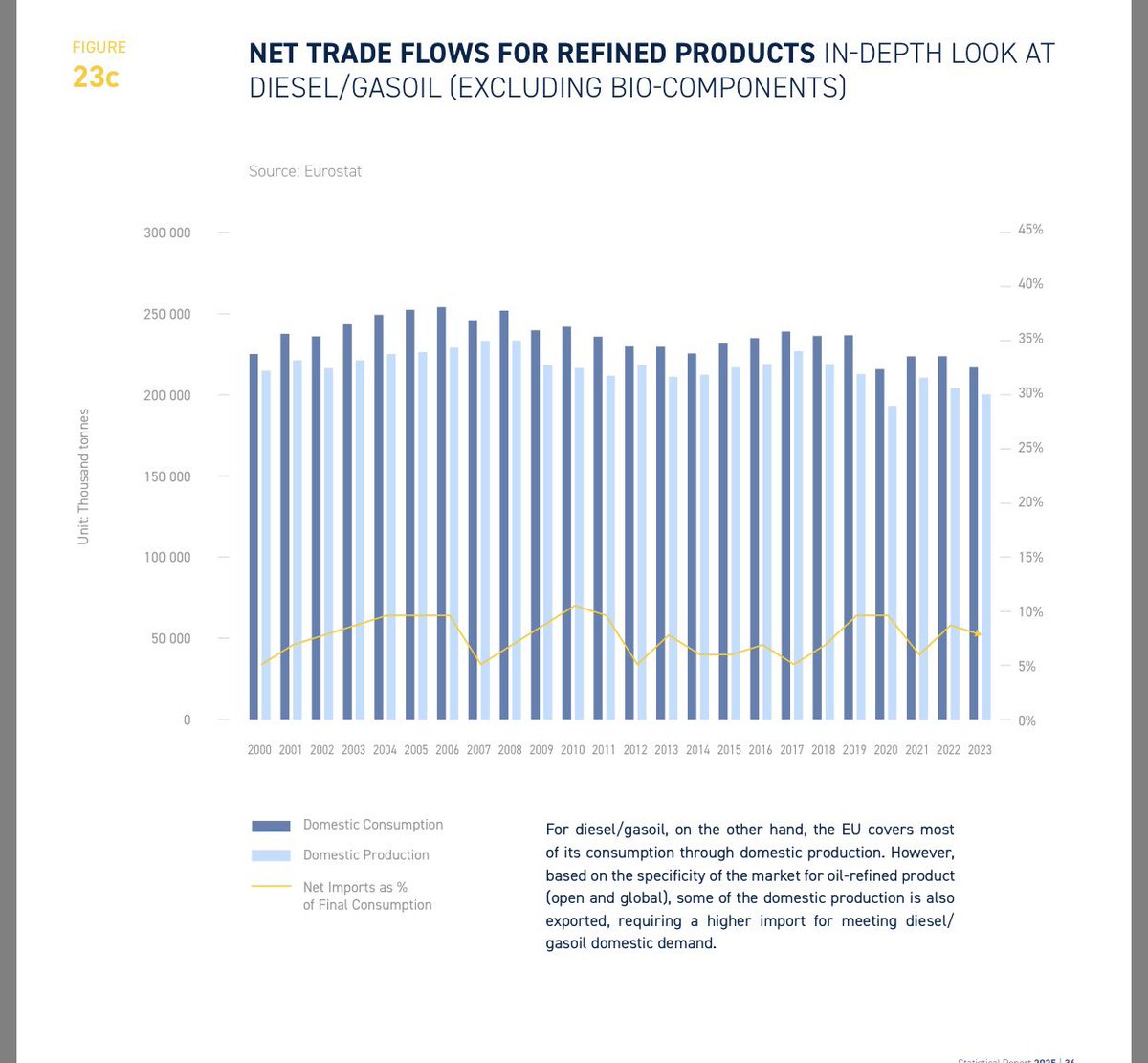 Des choix politiques peu judicieux qui ont favorisé le diesel et l’on rendu artificiellement compétitif. Ça backfire assez spectaculairement en plus d’avoir conduit le raffinage européen à la ruine
