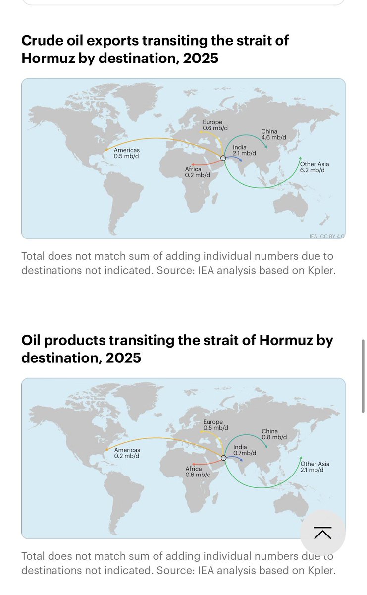 A savoir aussi que le gros du petrole au départ du golfe persique part en Asie. Cas nettement moins vrai pour le vraie problème, les produits raffinés, mid distillates (diesel & jet) en particulier