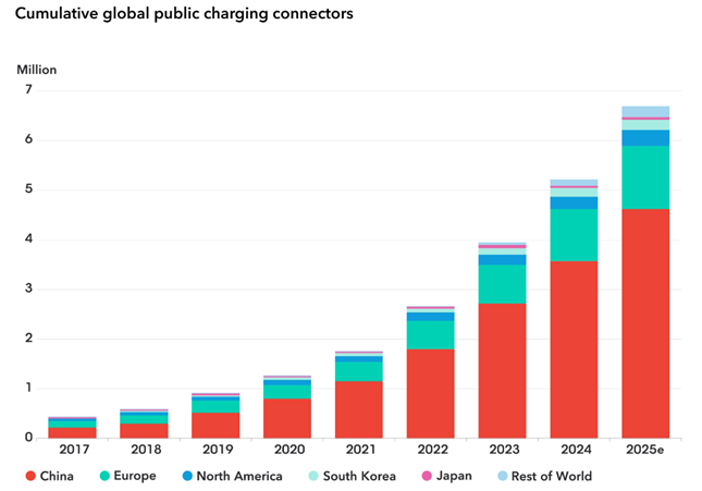 7/ In all, China has over 20x more public chargers than the US. Source: Bloomberg