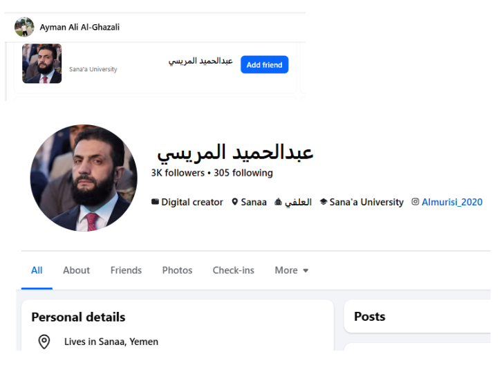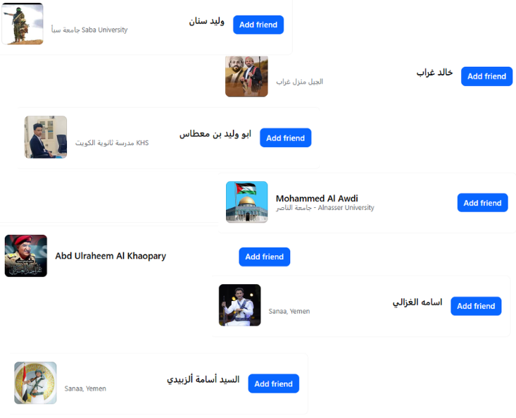 Multiple Facebook friends of Ayman are either actual militants or are praising militants across Yemen and beyond.