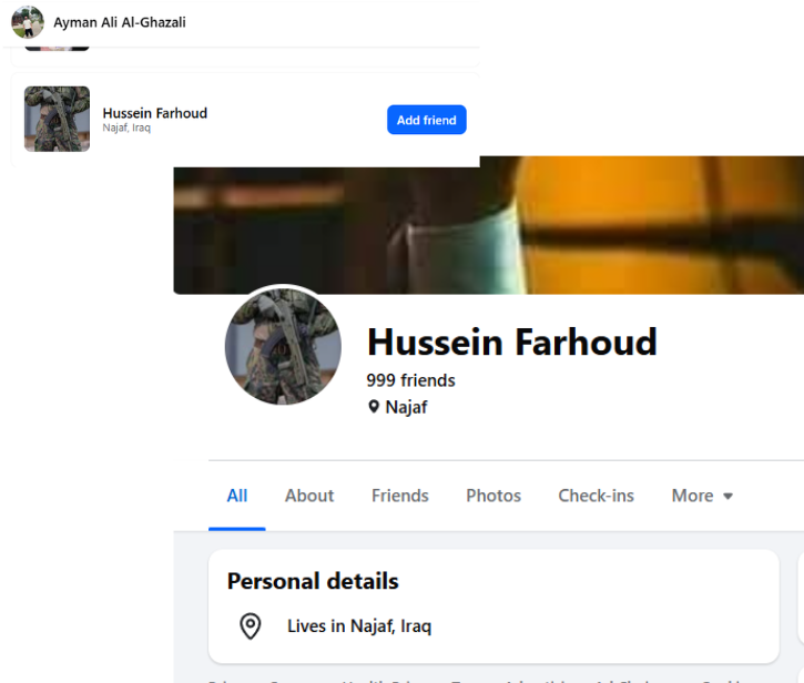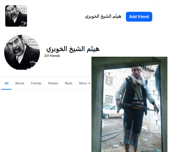 Other friends have profile pictures of Saddam Hussein and are armed.