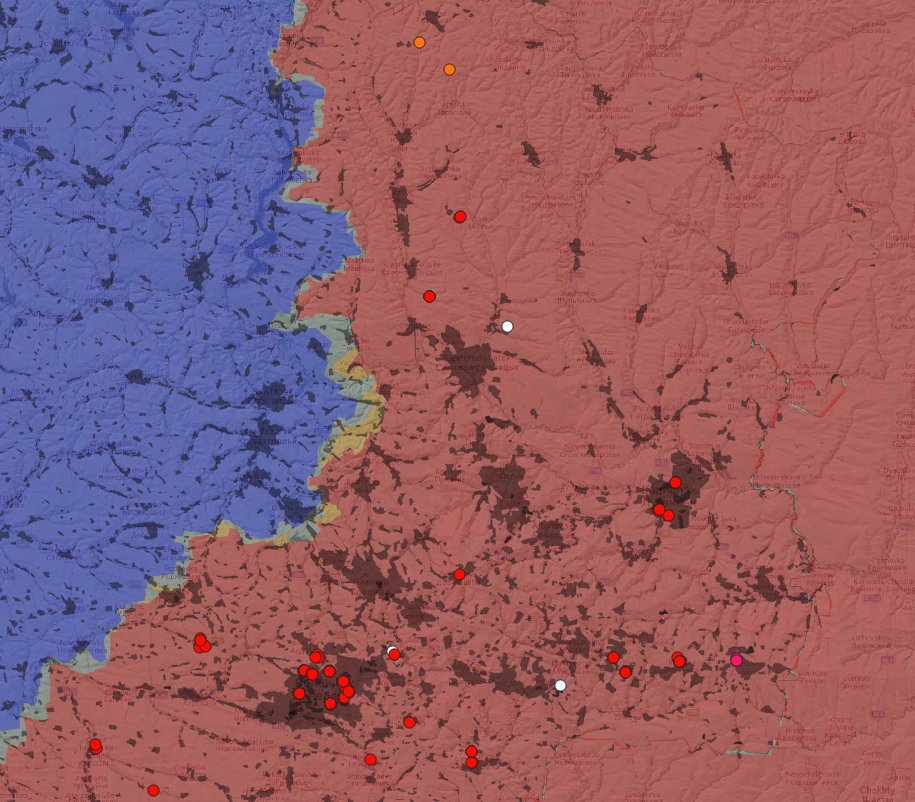 Here are the localisation of the russian brigades and divisions in the last two years in the frontline areas I cut (Could do that with the 6 grouping as well). You can see the frontline trends.