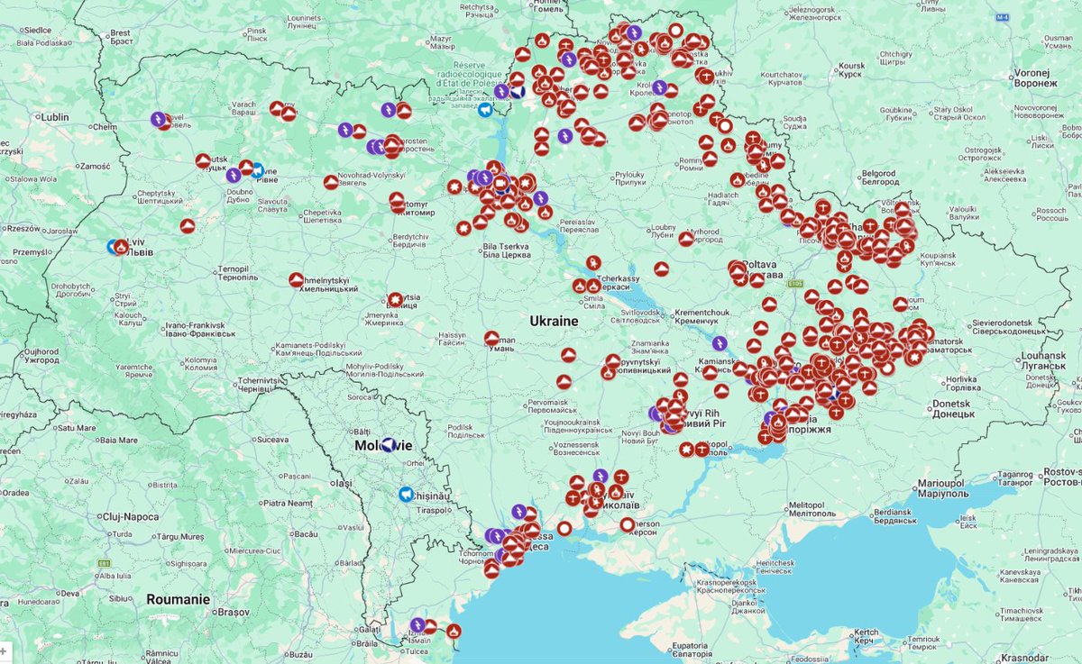 Voici par exemple toutes les frappes de drones Shahed et de missiles russes en 10 mois.