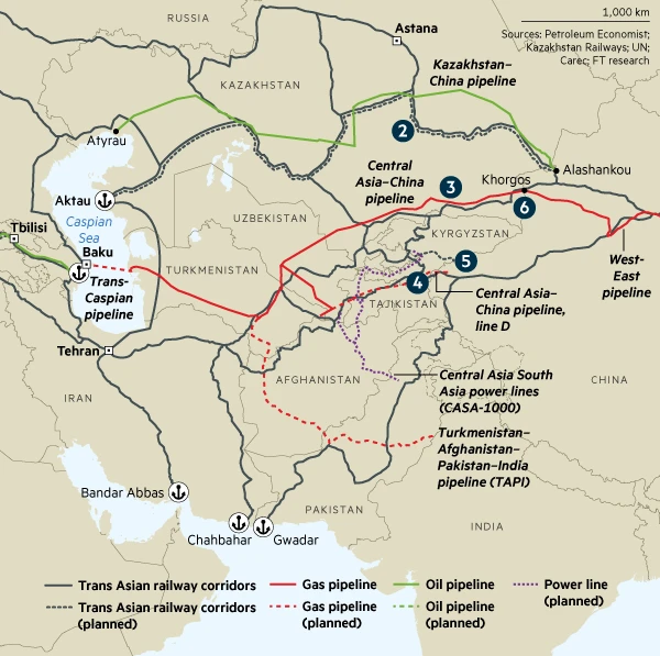 See below for Iran's domestic rail, China's rail cargo to Afghanistan, Iran's rail connection to GCC countries & Egypt + China's gas pipelines across Central Asia.