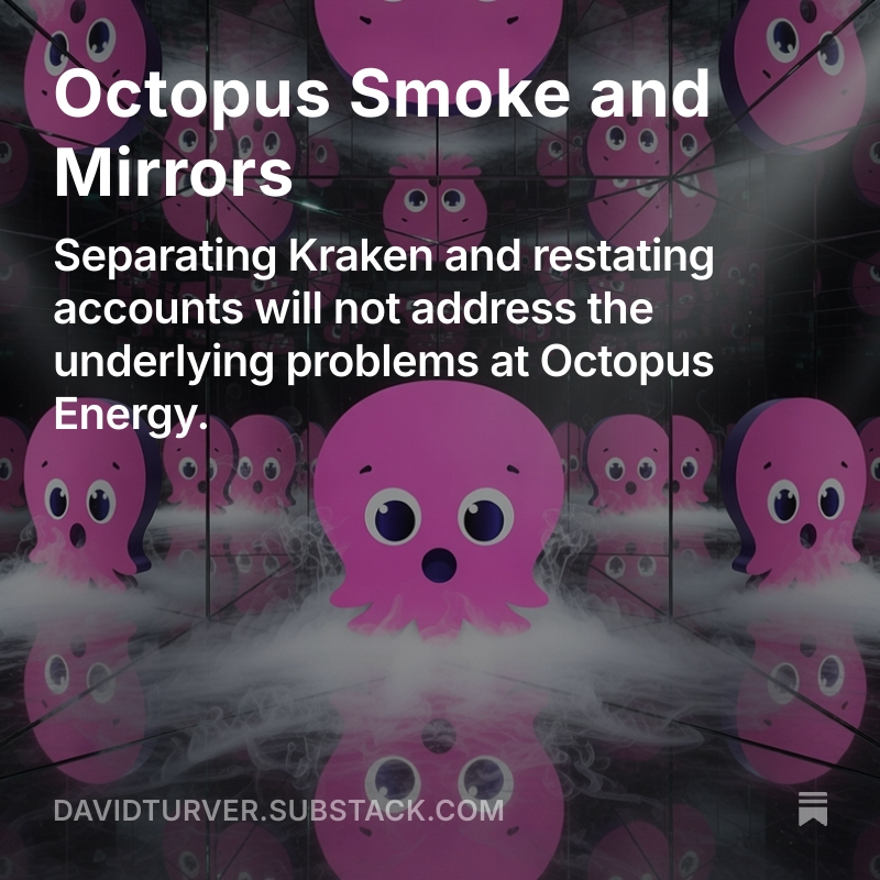 New deep dive: "Octopus Smoke and Mirrors" exposes what's really going on behind the hype at Octopus, the UK's biggest energy supplier. Spoiler: a lot of valuation puffery, restated accounts and marketing flim-flam. A thread (1/10)
