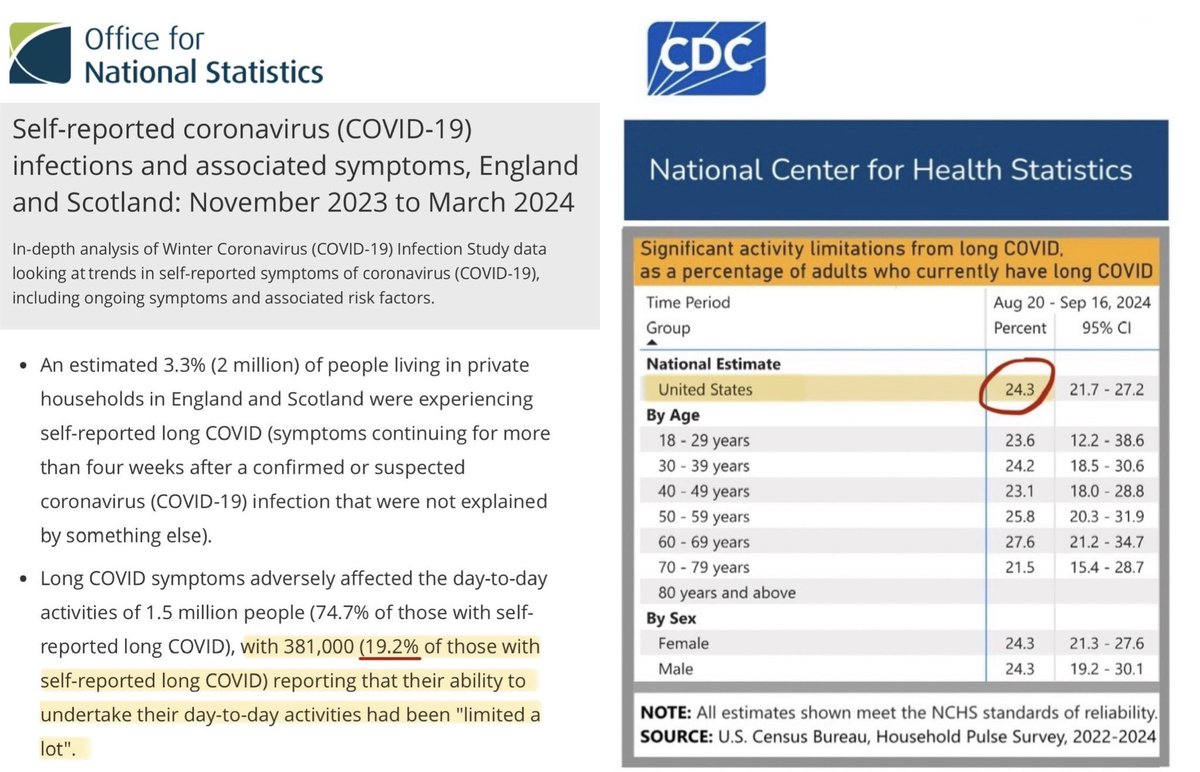 National data from both the UK (ONS) & US (CDC) suggests that roughly 1 in 5 of those affected by Long Covid will be SEVERELY debilitated, with their ability to undertake basic day-to-day activities limited a LOT.