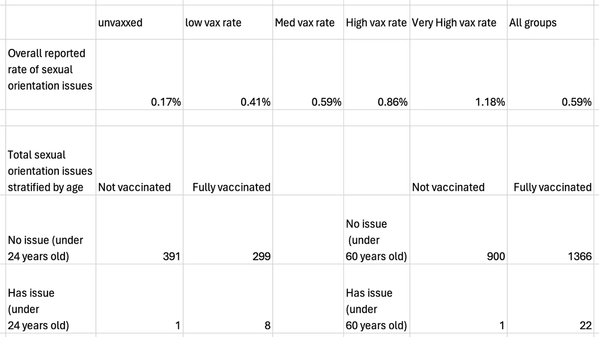 Participants who reported being vaccinated also reported sexual orientation or gender identity issues at significantly higher rates.