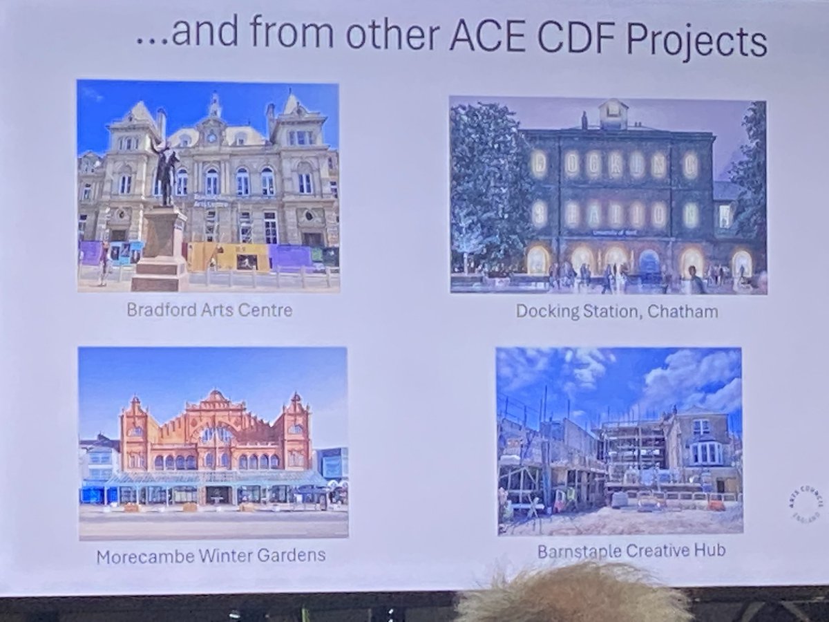 First panel looking at leadership, ownership & ops. With Bradford Arts Centre, Urban Hax, North Devon Council & Morecambe Winter Gardens. Good points on bringing the team with you - clarity of purpose for all, engaging local academics. Developing right comms for all partners.