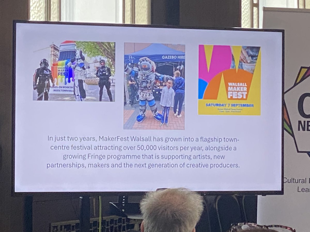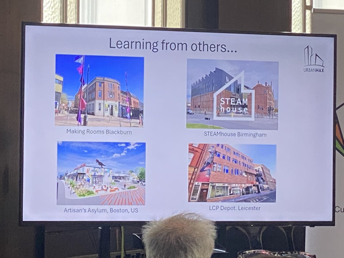 Next up @UrbnHax in Walsall. Creative Industries as part of the priority of the council. Learning from others to create a makers space in the Guild Hall. And learning from other CPF projects… Will be multi-disciplinary creative. Part of challenge - how to fit this all together.