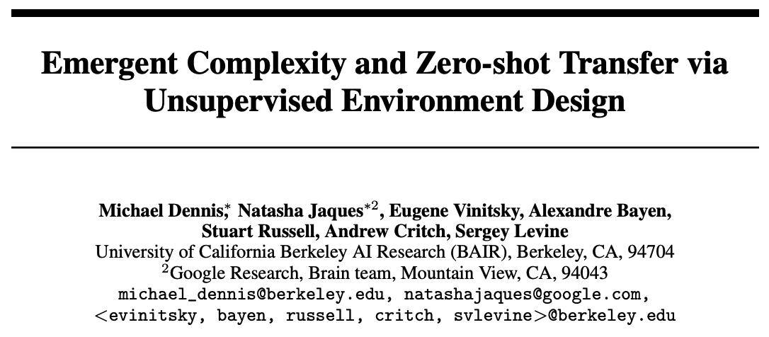 How can we move deep RL beyond games, without having to hand-build a simulator that covers real-world complexity? We adversarially generate a curriculum of challenging yet feasible environments by maximizing regret between a pair of agents, with PAIRED...